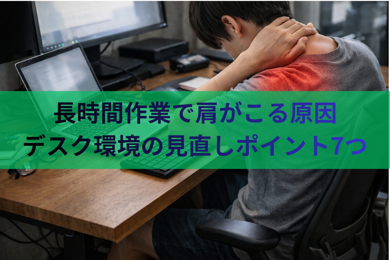 この記事では、長時間作業で肩がこる原因を整理しながら、デスク環境で見直すべきポイントを順番に解説します。どこから直せばよいか迷っている方でも、優先順位がわかる内容です。